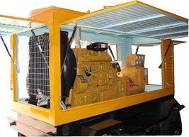 运河柴油发电机组/移动柴油发电机组设计独具创新,机动性高、重心低、制动安全、制造精良、外形美观。 运河拖车车架采用槽梁焊接成框架结构,节点选择合理、强度高、刚性好;同时装有钢板弹簧悬架结构;拖车采用高度可调节插销式牵引架,适用于各种高度牵引车;采用圆形钢管焊接直通式车轴,结构紧凑,安全可靠;车架四角设有机械式支撑装置,配备惯性行车制动、驻车制动和脱离应急制动,确保机组在各种状况下的安全;车架前端设有支撑轮,具备承受机组垂直载荷的功能的同时还具备导向功能;整车配备转向和刹车指示灯,同时装有尾灯标准插头